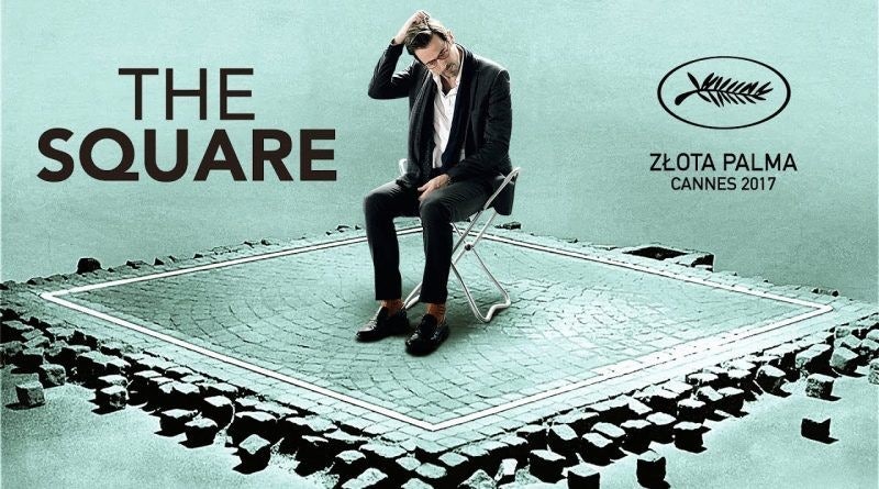 영화 속 핵심 작품은 미술관 앞 광장에 설치된 정사각형 구역 "The Square"다. 이 작품에는 다음과 같은 설명이 붙는다. “더 스퀘어는 신뢰와 배려의 성역이다. 그 안에서는 우리 모두가 평등한 권리를 가진다.” 표면적으로 이 문구는
